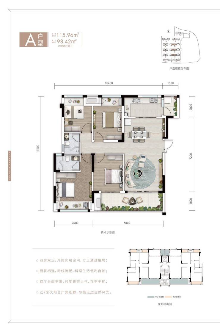 建面约115平套四