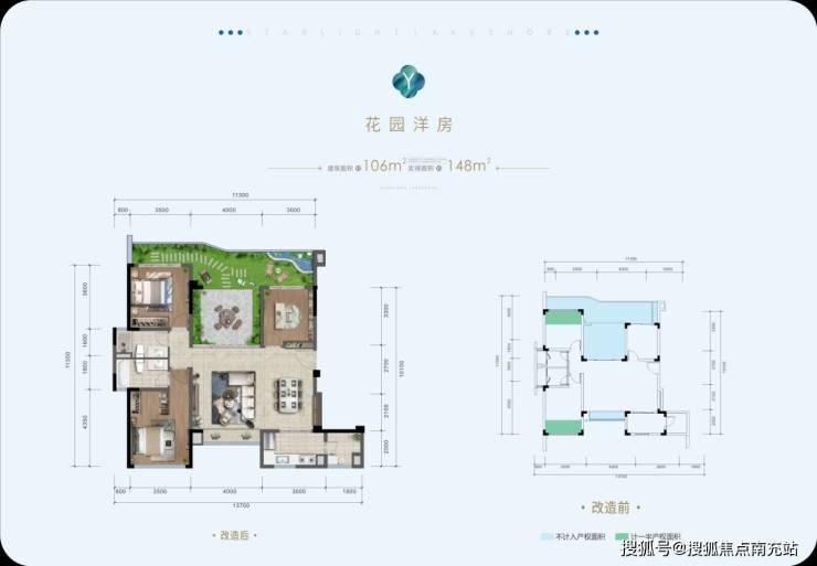 Y建面约 106 ㎡,实得约 148㎡景观大三房
